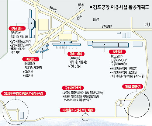 ▽남은 과제〓한국공항공단은 내년 6월 이후 김포공항에 인접한 50여만평의 부지에 대규모 물류단지와 복합위락단지를 조성한다는 기본 방침을 밝혔다.