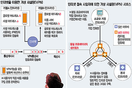 기업 정보화 담당자라면 누구나 갖고있는 고민이다. 그 해답으로 ‘가상사설망’(VPN,Virtual Private Network)이 떠오르고 있다. VPN은 인터넷에 가상의 기업전산망을 만들어 놓고 사용하는 것. 기업이 별도의 네트워크를 설치할 필요가 없고 어느 장소에서나 활용할 수 있는 게 최대의 장점이다.