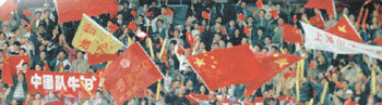지난해 10월7일 중국이 랴오닝성 선양에서 열린 오만과의 경기에서 2002년 월드컵 본선진출을 확정지을 때 경기를 직접보기 위해 전국에서 우리허경기장으로 몰려든 사람만 10만여명. 이와는 별도로 수도 베이징 텐안먼(天安門)광장에도 약 10만명의 축구팬이 몰려들어 국기를 흔들며 열광했다.