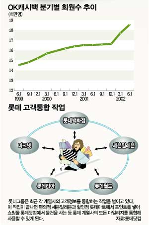 ▽후발업체들의 추격〓롯데와 제일제당 등은 앞다퉈 계열사별 고객 정보를 통합하는 작업에 들어갔다.