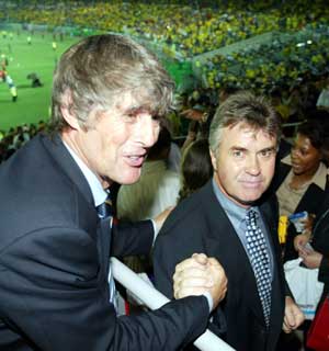 결승전이 열리는 요코하마경기장에서 만난 히딩크 감독과 밀루티노비치 중국 감독.
