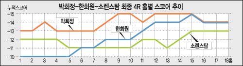 이날 따라 박희정은 아버지가 지적했던 퍼팅이 잘 되지 않으면서 애를 먹었다. 짧은 퍼팅이 여러 차례 놓쳐 한희원과 아니카 소렌스탐에게 추격을 허용했다. 쌍안경까지 들고 다니며 딸을 응원한 아버지는 괜한 꾸중을 했나 싶어 속이 까맣게 탔다.