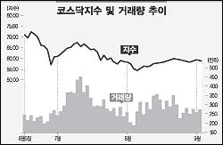 코스닥종합지수도 0.53포인트(0.89%) 떨어진 59.01에 거래를 마쳐 60선 돌파에 또다시 실패했다.