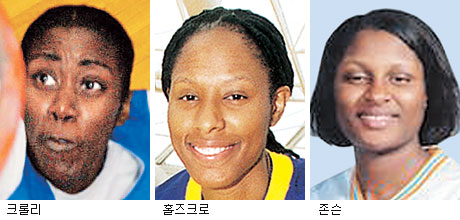 우선 올해 테네시대를 졸업한 국민은행 세이커스의 미셸 스노(1m96). 그는 남자선수 못지않게 투핸드 덩크슛을 마음대로 구사하는 탄력을 자랑한다. 그는 지난주 첫 훈련에 나서자마자 덩크슛을 터뜨려 국민은행 선수들의 찬사를 자아냈다.
