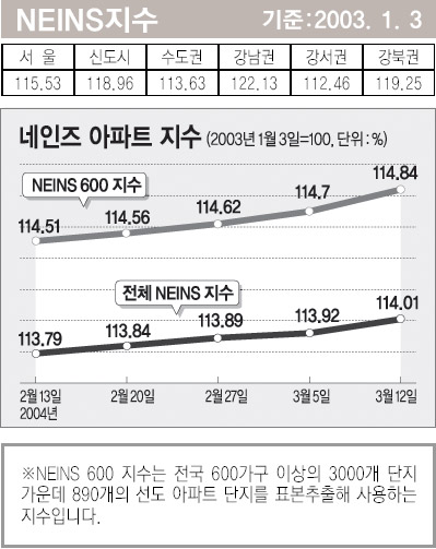 수도권 신도시 중에서는 분당 아파트의 가격 상승 폭이 컸다. 이는 판교 신도시 조성에 따라 토지 보상을 받은 사람들이 분당 아파트를 사들였기 때문으로 풀이됐다. 분당 수내동 양지금호 32평형은 일주일 새 1000만원 올라 5억원대에 거래됐다. 서울과 신도시를 제외한 수도권에서는 과천의 오름세가 두드러졌다. 평형별로는 30∼40평형대가 오른 반면 20평형대와 50평형 이상은 소폭 떨어졌다.