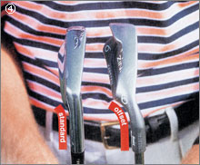 ―그렇다. 골프룰(부록Ⅱ 4b)에는 이를 엄격하게 규정하고 있다. 그런데 특별한 이유는 없다. 정규대회에서 사용할 수 있는 골프채 숫자를 14개 이내로 제한한 것과 마찬가지로 그저 그렇게 규정했을 뿐. 요즘 유행하는 일명 ‘2볼 퍼터’도 육안으로는 타면에서 뒷면까지가 더 길어 보이지만 실제로 측정해보면 힐에서 토까지의 길이가 더 길다. 만약 이 규정에 어긋난 클럽을 사용한다면 바로 실격.