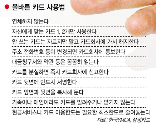 한국YMCA와 함께 대학생과 직장인 대상 신용교육을 하고 있는 소비자 전문가 민난홍씨는 “신용카드는 편리하고 소득공제 등 혜택도 있지만, 무분별한 사용으로 신용불량자가 되거나 관리 소홀로 타인이 카드를 도용하는 위험도 있다”고 말했다.