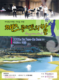 ○…파인힐스CC(대표이사 김헌수)가 7일과 8일 주말 이틀간 오후 7시부터 클럽 로비라운지와 파인코스 1번 티잉그라운드에서 서울팝스오케스트라를 초청해 ‘재즈 콘서트의 밤(사진)’을 연다. 이날은 퍼팅그린도 개방해 가족이 퍼팅 대결을 할 수 있고 다양한 먹을거리 장터도 마련한다고. 061-750-9000