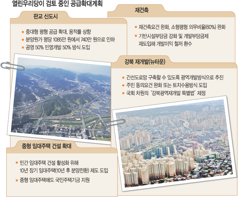 당-정-청은 공급 확대를 추진하되 민간이 개발이익을 가져가지 못하도록 공공부문의 역할을 확대해야 한다는 입장이다.