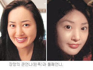 큰언니 미경(30) 씨는 미국 올랜도 집을 지켜야 해 이번 귀국길에 동행하지 못했다. 4년 전 미국으로 건너가 장정의 매니저로 스케줄 관리와 장거리 운전을 도맡고 있다. 큰언니가 173cm이고 둘째 언니는 162cm, 장정은 151cm로 밑으로 내려가면서 11cm씩 작아진 키도 이색적이다. 친가 쪽은 키가 작고, 외가 쪽은 키가 큰 편인데 장정은 돌아가신 할머니를 많이 닮았단다.