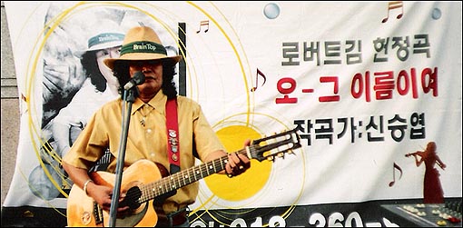2000년부터 불우한 이웃을 위해 거리공연을 하고 있는 신 씨는 작년 여름 로버트 김 헌정곡을 처음 만들어 지하철과 거리에서 불러왔다.