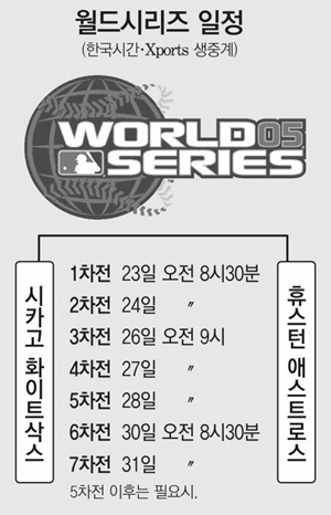 휴스턴은 23일 적지에서 시카고 화이트삭스와 월드시리즈 1차전을 벌인다. 1차전 선발은 휴스턴이 43세의 창단둥이 로저 클레먼스를, 화이트삭스가 호세 콘트라레스를 예고.