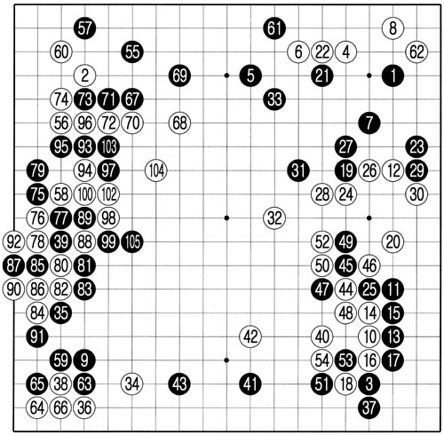 백 이창호 9단 흑 최철한(9단) 국수 105수 흑 불계승 101…88