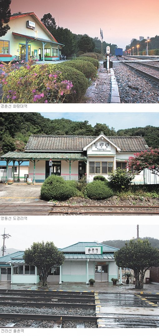 시속 300km가 넘는 고속철도(KTX)가 오가는 시절이지만 아직도 많은 사람의 마음속엔 명절 때 덜컹거리던 비둘기호를 타고 어머니 품처럼 따스했던 고향의 간이역에 내렸던 기억이 살아 있다. 우리네 할아버지 할머니들이 보따리를 지고 열차를 기다렸던 일상의 공간이자 젊은이들이 통기타를 둘러메고 떠나던 수련회에서도 빠질 수 없는 풍경이었던 간이역이 문화재로 지정된다. 문화재청이 27일 등록 대상으로 밝힌 간이역은 화랑대역(경춘선)과 도경리역(영동선), 율촌역(전라선)을 비롯해 팔당역(중앙선), 일산역(경의선), 가은역(가은선), 구둔역(중앙선), 심천역(경부선), 남평역(경전선), 송정역(동해남부선), 동촌역(대구선), 청소역(장항선) 등 12곳이다.
