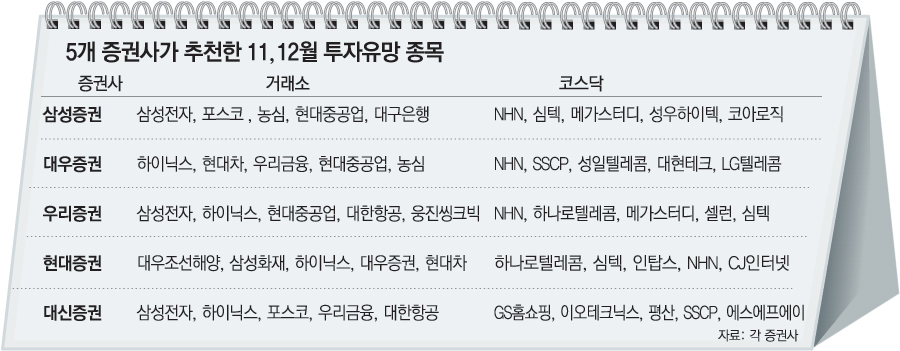 본보는 5개 주요 증권사 투자분석팀으로부터 남은 기간 중 장외 변수에 흔들리지 않을 유망 종목들을 거래소 5개, 코스닥 5개씩 추천받았다.