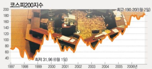 그래서 실제 인덱스펀드들은 40∼50개 종목에만 투자한다. 비록 코스피200지수가 200개 종목으로 구성돼 있어도 삼성전자 국민은행 등 시가총액이 큰 기업의 비중이 워낙 높기 때문에 대충 40여 개 종목만으로도 지수를 복제할 수 있다는 것이다.