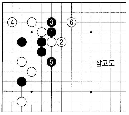 흑 17로 참고도 흑 1처럼 끊고 싶은 충동이 들지만 백 6까지 흑이 무리. 백 20으로 잇는 수가 정수. 잇지 않고 늘면 계속 밀려서 좋지 않다.