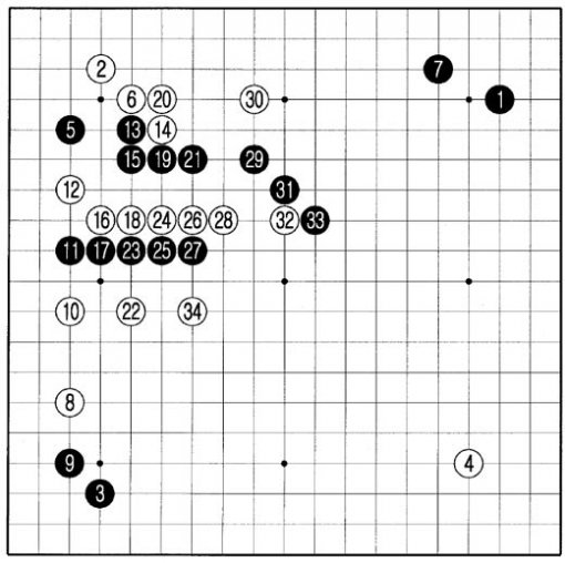 백 34까지 전투가 전판으로 확대될 조짐이다. 쉽게 끝나지 않을 싸움이다.