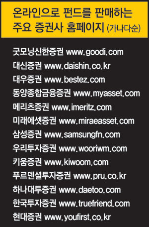 미래에셋증권은 전체 펀드 판매 매출의 18%를 홈페이지 ‘금융상품센터’에서 올리고 있다. 굿모닝신한증권은 115개 이상의 펀드를 온라인에서 판매한다.