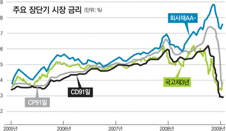 회사채 시장을 보면 회사채 BBB― 금리는 아직 높은 수준에서 유지되고 있고, 회사채 AA―도 소폭의 조정만 받고 있다. 회사채 금리가 불안한 것은 글로벌 신용경색이 지속돼 경기하락이 우려되는 가운데, 국내 은행권의 상당 규모 증자 필요성 및 산업별 구조조정 지연 등이 불확실성 요인으로 작용하기 때문이다. 따라서 회사채가 투자 매력이 큰 것이 사실이지만 본격적인 투자가 이뤄지려면 경기 회복 및 구조조정의 불확실성 해소 등이 필요해 보인다.