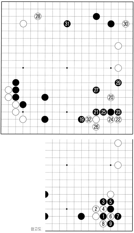 흑 29로 백 진에 뛰어든 것은 좁은 듯하지만 요처에 속한다. 우변 백이 편안하게 안정되면 흑이 앞으로 백을 괴롭힐 거리가 없어진다.