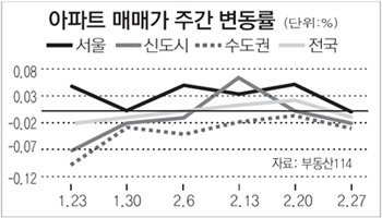 부동산정보업체 부동산114에 따르면 지난주 서울 아파트 가격은 변동이 없었다. 재건축 아파트도 거래량이 줄면서 한 주간 0.1% 오르는 데 그쳤다.