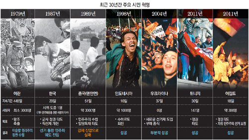 한국의 1987년 민주항쟁이 경찰의 고문으로 숨진 서울대생 박종철, 최루탄에 맞아 숨진 연세대생 이한열 씨 등 꽃 같은 젊은이들의 희생을 거름 삼아 이뤄진 것도 같은 맥락이다.