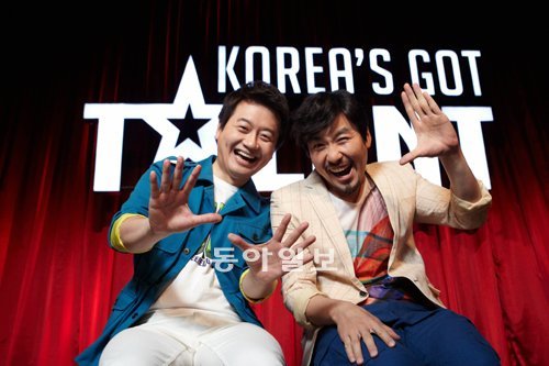 tvN '코리아 갓 탤런트' 진행을 맡은 신영일(왼쪽)과 노홍철. CJ E&M 제공 ▶ "유행어? 씨를 뿌릴 토양이 있어야지…"