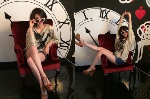 사진 속 고아라는 고양이가 프린트 된 헐렁한 가오리 티셔츠와 데님 소재의 핫팬츠를 입고 있다. 고아라는 레드 벨벳 소재의 소파에 앉아 다리를 꼰 채 선글러스 너머로 도발적인 눈빛을 보내며 섹시함을 드러냈다.