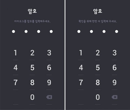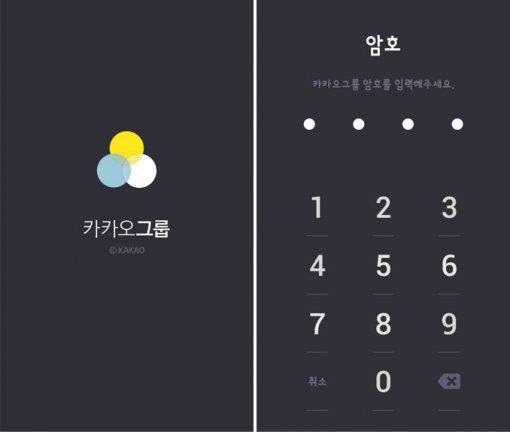 그러면 카카오그룹 암호를 설정하는 화면이 나타난다. 카카오그룹 암호는 숫자 4자리로 입력하면 된다. 확인을 위해 한번 더 입력한다.