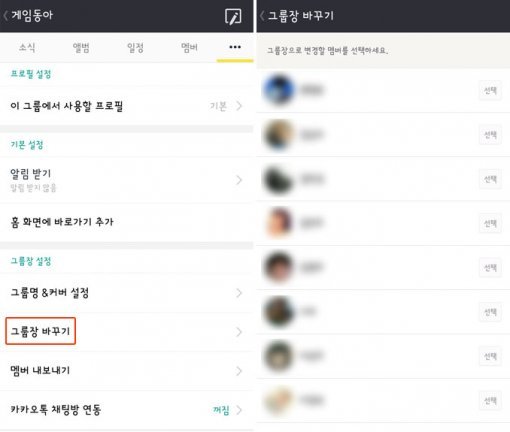 그룹장은 '그룹장 바꾸기'를 선택하고 원하는 멤버를 선택해, 그룹장 권한을 넘겨줄 수 있다.