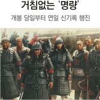 투자 배급사인 CJ엔터테인먼트에 따르면 이순신 장군의 명량대첩을 다룬 ‘명량’은 개봉 10일째인 8일 관객 870만 명을 넘어섰다. ‘명량’은 이번 주말 예매율도 1위여서 흥행 돌풍이 당분간 수그러들지 않을 것으로 전망된다. 영화계는 “지금 같은 추세라면 1500만 관객도 가능하다”고 내다본다. 현재까지 역대 최다 관객 수를 기록한 영화는 1362만 관객이 든 ‘아바타’(2009년)였다. 국내 영화로는 ‘괴물’이 1302만 명을 동원해 1위 기록을 가지고 있다.