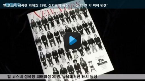 미국 시사주간지 뉴욕매거진은 27일(현지 시간) 메인 표지에 서로 비슷한 자세로 의자에 앉아 있는 다양한 인종의 여성 35명의 흑백사진을 실었다. 잡지는 또 빌 코스비에게 성폭행 당했다고 주장하는 이들과의 인터뷰를 게재했다. 이들 중 6명의 인터뷰 동영상은 웹사이트에 게재됐다.