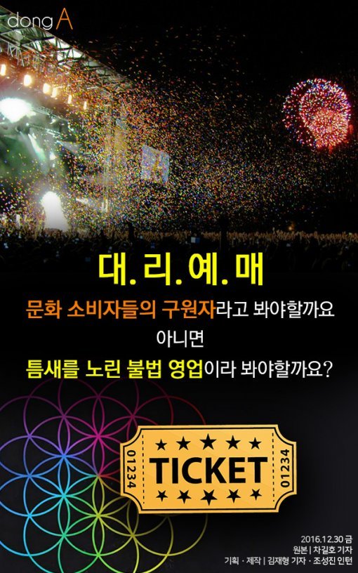 #.10 반대 의견도 나오긴 합니다. 한 인디밴드 공연기획사 관계자는 유명 가수 콘서트를 넘어 인디밴드 공연까지 대리예매가 성행하는 것을 보고 놀랐다고 말합니다. "현행법 위반은 아니지만 정상적인 티켓 구매 방식은 아니므로 문제가 있다"