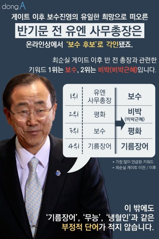 #.11 게이트 이후 보수진영의 유일한 희망으로 떠오른 반기문 전 유엔 사무총장은 온라인상에서 '보수 후보'로 각인됐죠.