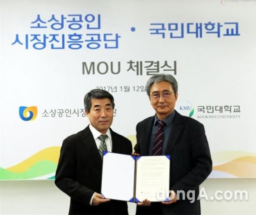 국민대학교와 소상공인시장진흥공단 서울강원지역본부는 12일 오후 2시 국민대 산학협력관에서 ‘소상공인 및 전통시장 성장 발전을 통한 지역경제 활성화’를 위한 MOU를 체결했다. 사진제공=국민대