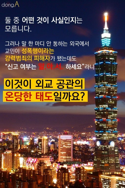 한국 여성, 대만 택시기사에 성폭행 당해도...