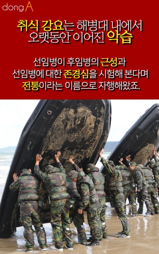 #6. 취식 강요는 해병대 내에서 오랫동안 이어진 악습. 선임병이 후임병의 '근성'과 선임병에 대한 존경심'을 시험해 본다며 '전통'이라는 이름으로 자행해왔죠.