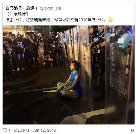 홍콩 시민들의 범죄인 인도(송환법) 반대 시위 현장에서 경찰 앞에 앉아 명상에 잠겼던 이른바 ‘방패 소녀’가 화제의 인물로 떠올랐다.