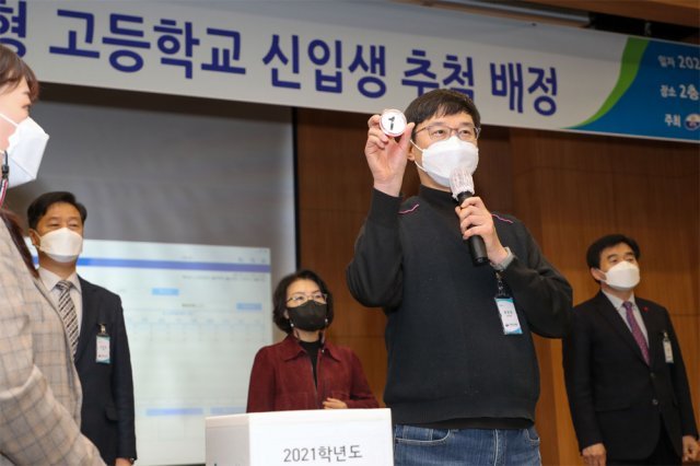 12일 강원도교육청 대회의실에서 2021학년도 평준화 고교 신입생 추첨 배정이 진행되고 있다. 이번 추첨으로 춘천 원주 강릉 지역 신입생 5289명의 학교가 배정된다. 배정 결과는 15일 오후 4시 도교육청 및 해당 교육지원청 홈페이지에 공개한다.