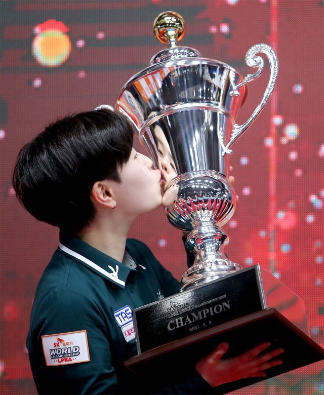 김세연은 8년 전 시급 5500원을 받으며 당구장에서 아르바이트를 하다 2017년 선수로 나서 올해 여자프로당구(LPBA) 월드챔피언십 초대 챔피언에 올랐다. LPBA 제공