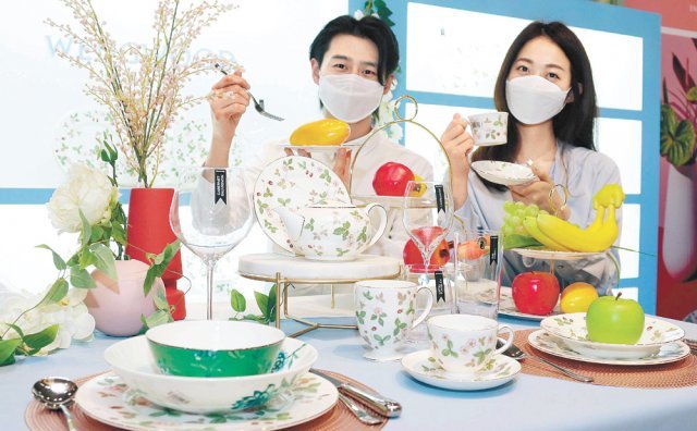 6일 오전 서울 서초구 신세계백화점 강남점에서 모델들이 영국 여왕의 도자기인 ‘웨지우드’ 팝업 스토어를 소개하고 있다. 8일까지 진행되는 팝업 기간 동안 웨지우드의 인기 상품인 와일드 스트로베리 전 품목을 30% 할인가에 만나볼 수 있다.