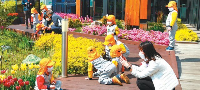 9일 대구 서구를 방문한 근로복지공단 대구어린이집 아이들이 구청 옥상정원을 체험하고 있다. 서구는 이달부터 교육 인프라 확충에 집중한다. 대구 서구 제공