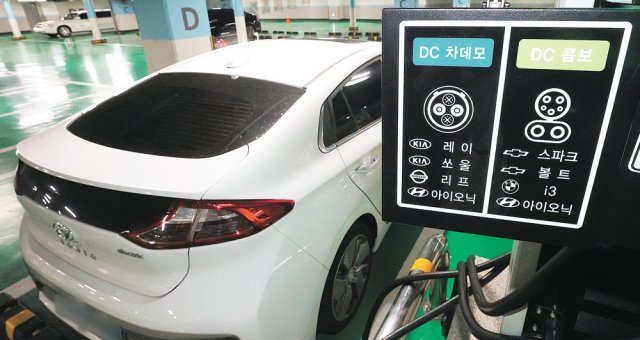 11일 서울의 한 전기차 충전소에서 충전하고 있는 전기차의 모습. 12일부터 공공장소에 설치된 전기차 급속충전기의 사용 요금이 15∼21% 오른다. 전기차 충전요금 특례 할인이 단계적으로 축소되기 때문이다.