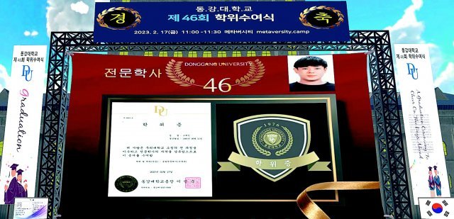 동강대(총장 이민숙)가 국내 대학 가운데 처음으로 디지털 졸업장인 ‘오픈배지’로 학위를 수여했다. 동강대는 17일 메타버스를 활용한 ‘metaversity.camp’에서 2022학년도 제46회 학위 수여식을 열고 25개 학과 939명에게 졸업장을 전달했다. 동강대는 인공지능(AI)중심교육 허브대학, 창업선도대학을 비전으로 제시하며 지난해부터 메타버스 공간에서 입학식 및 졸업식을 진행하고 있다.