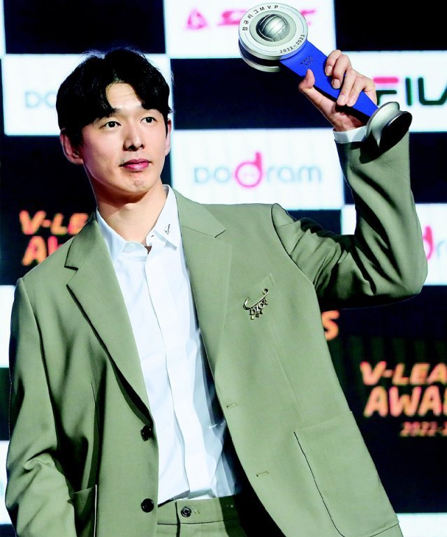 프로배구 2022∼2023시즌 V리그 남자부 정규리그 최우수선수(MVP)에 뽑힌 대한항공 한선수. 뉴스1