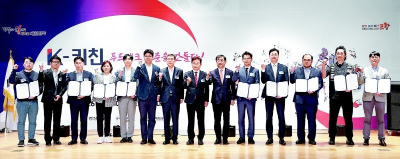 26일 경북 포항시청 대회의실에서 열린 K키친 추진위원회 발대식에서 이철우 경북도지사(왼쪽에서 여덟 번째)와 이강덕