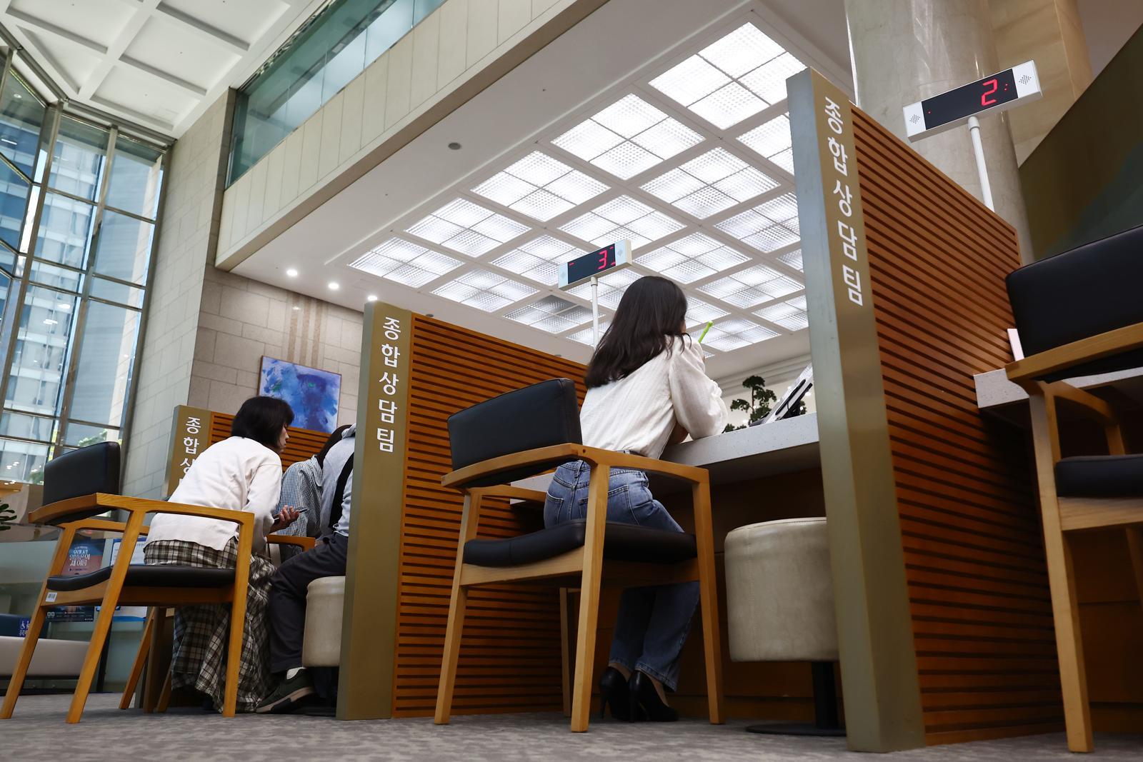 부동산 대출규제 강화 첫날인 16일 오전 서울 시내의 한 은행에서 시민들이 대출 상담을 받고 있다.  2025.10.16 뉴스1
