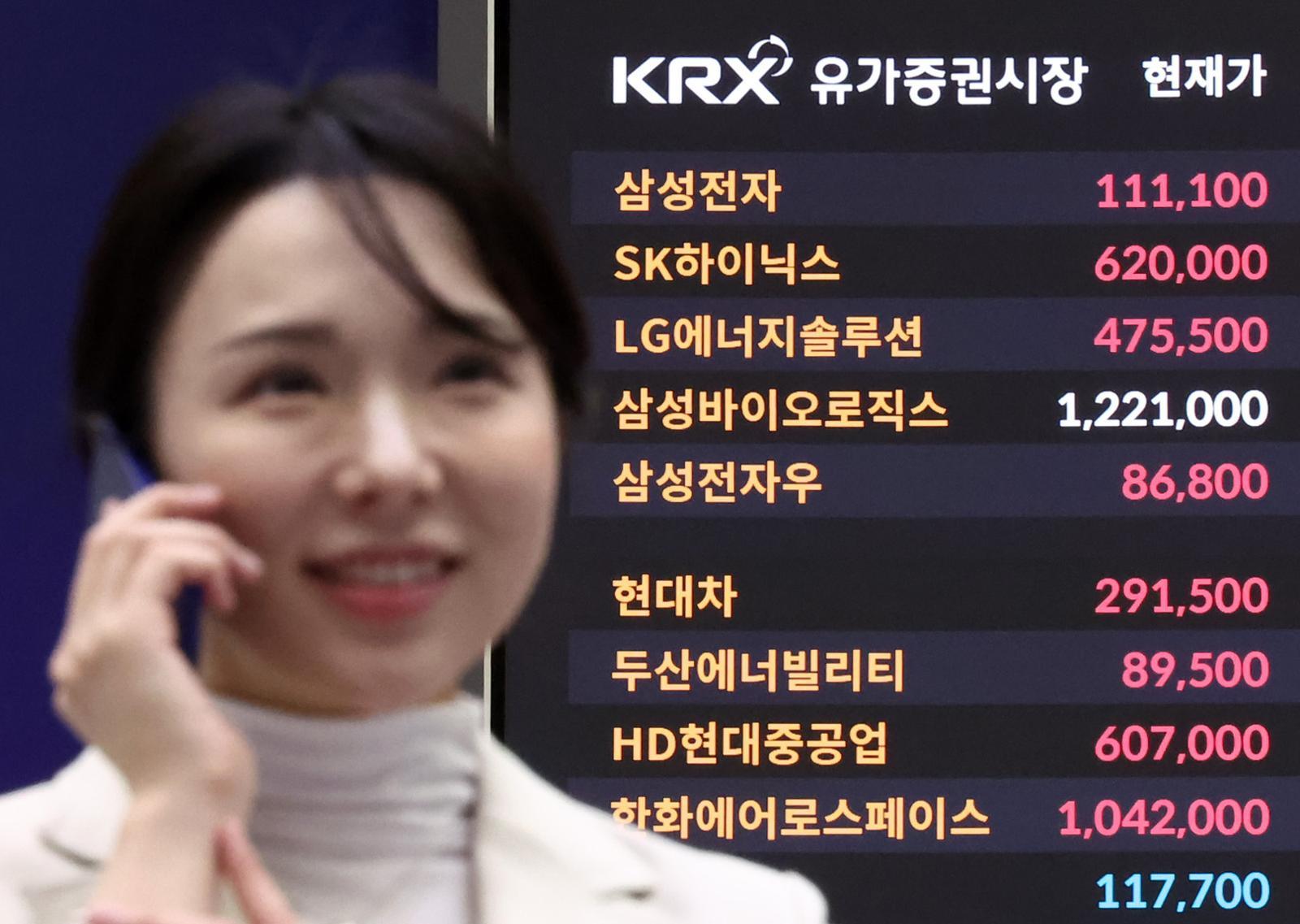 코스피가 4,221.87로 사상 최고치로 마감한 3일 서울 여의도 한국거래소 현황판에 주요 종목 종가가 표시돼 있다. 증시가 상승하며 주식 시장에서는 기회를 놓칠까 봐 두려운 마음에 일단 주식을 사고 보는 ‘포모(FOMO·Fear Of Missing Out)’ 현상 등 다양한 투자자들의 심리가 관찰된다. 뉴스1