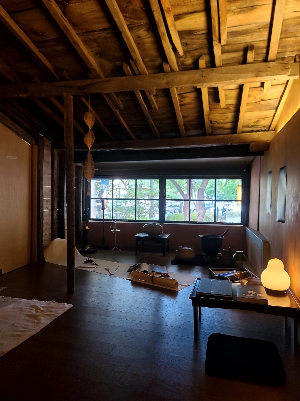 땅거미가 내려앉은 어스름하고 몽환적인 저녁에 시작된 행사의 첫 번째 주인공은 집이었다. 얇고 휘어진 나무까지 그대로 사용해 얼기설기 엮은 천장과 두꺼운 장지로 막은 나무창. 2층 격자무늬 창문으로는 잎 넓은 가로수가 화사한 풍경으로 펼쳐졌다. 원래 철거 수순을 밟던 할머니의 집이었는데 그곳에 쌓인 오랜 시간이 훅 사라지는 것을 안타까워 한 치과의사 손자가 복합문화공간으로 사용하고 있다고 했다.